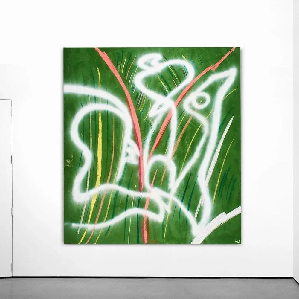 In this new series, Ali combines uniquely tropical imagery with punk aesthetics to create a vibrant energetic experience that pairs ideas of beauty and rebellion. “Hyper Tropic” uses the same composition, and repeating it across a series of canvases with variation in texture, shape and color - invoking a pop iconography in iterations that speak to shades of the metaphoric expression of pairing a natural, beautiful aesthetic, with a fun, youthful, vibrant punk self empowerment.